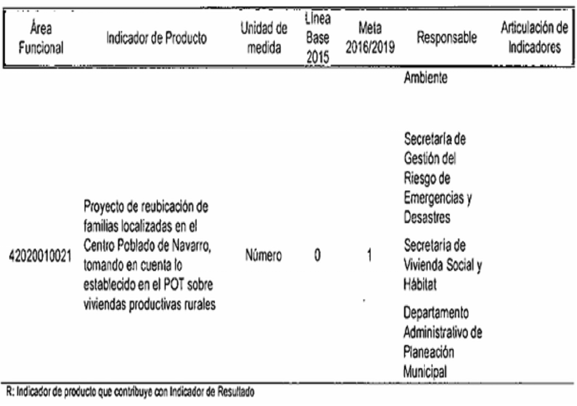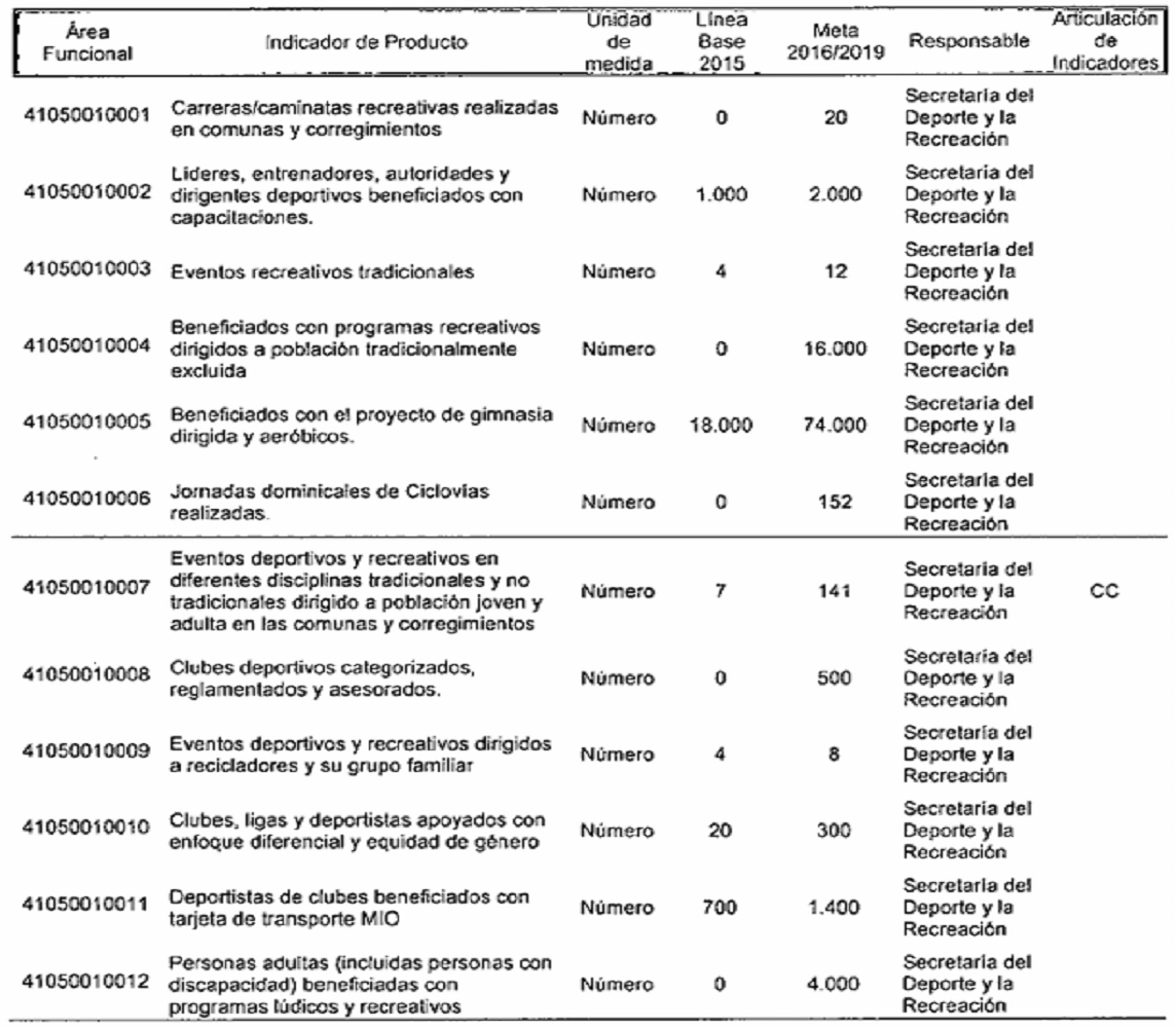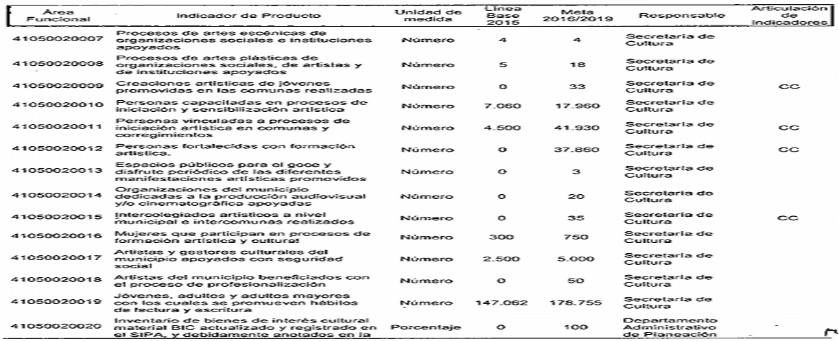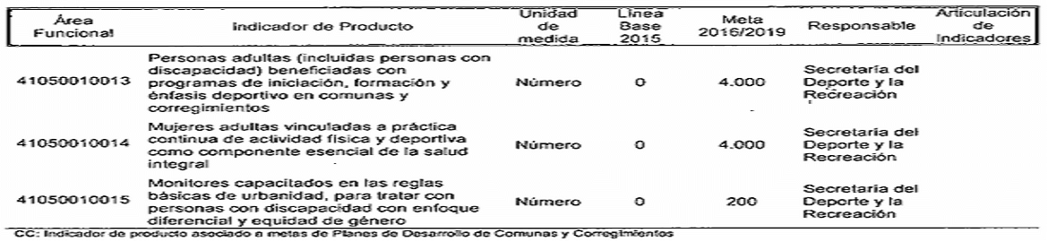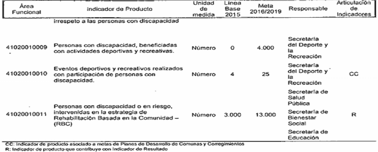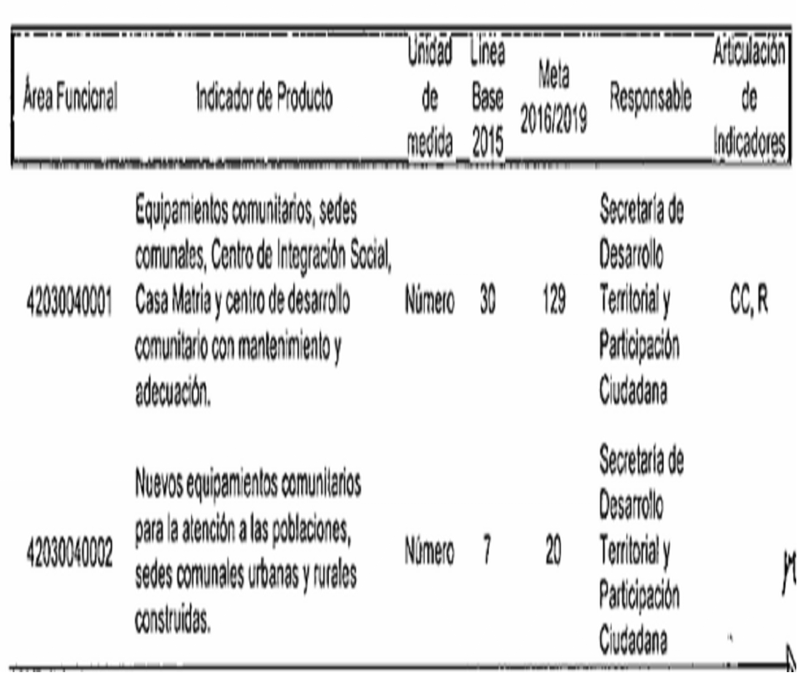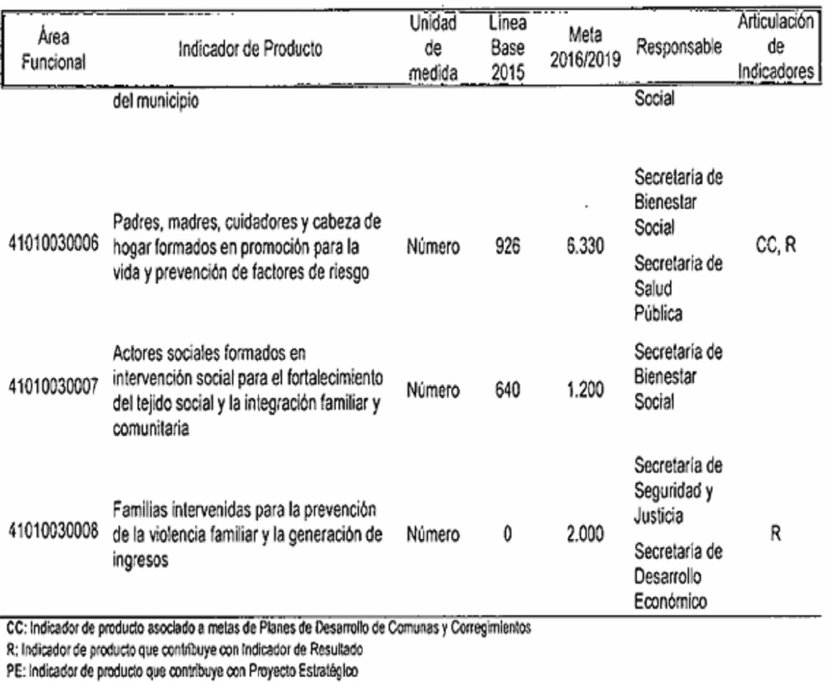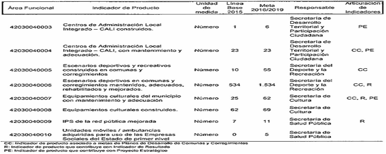 CC: Indicador de producto asociado a metas da Planes de Desarrollo de Comunas y Corregimientos R: Indicador de producto que contribuye con Indicador de Resultado