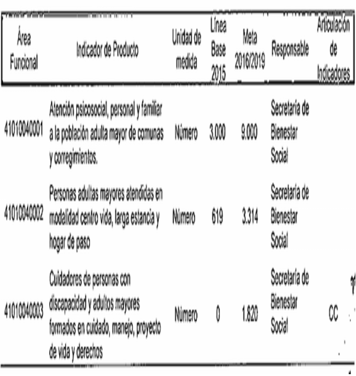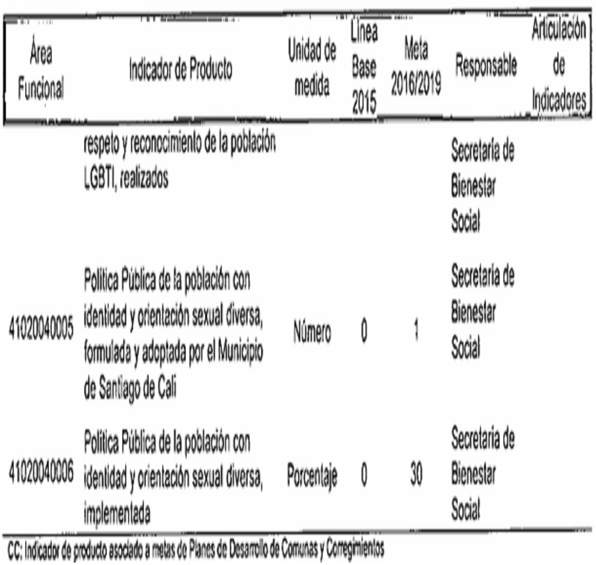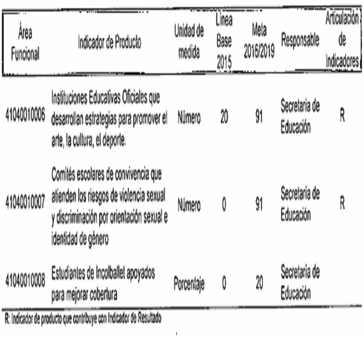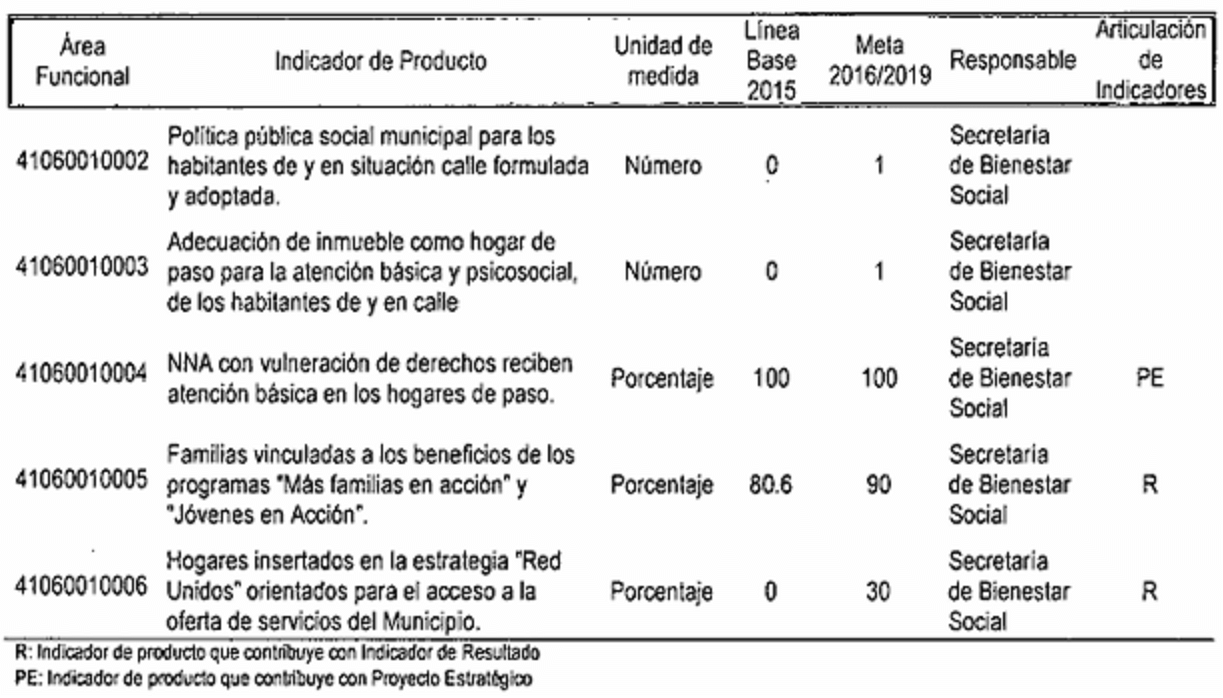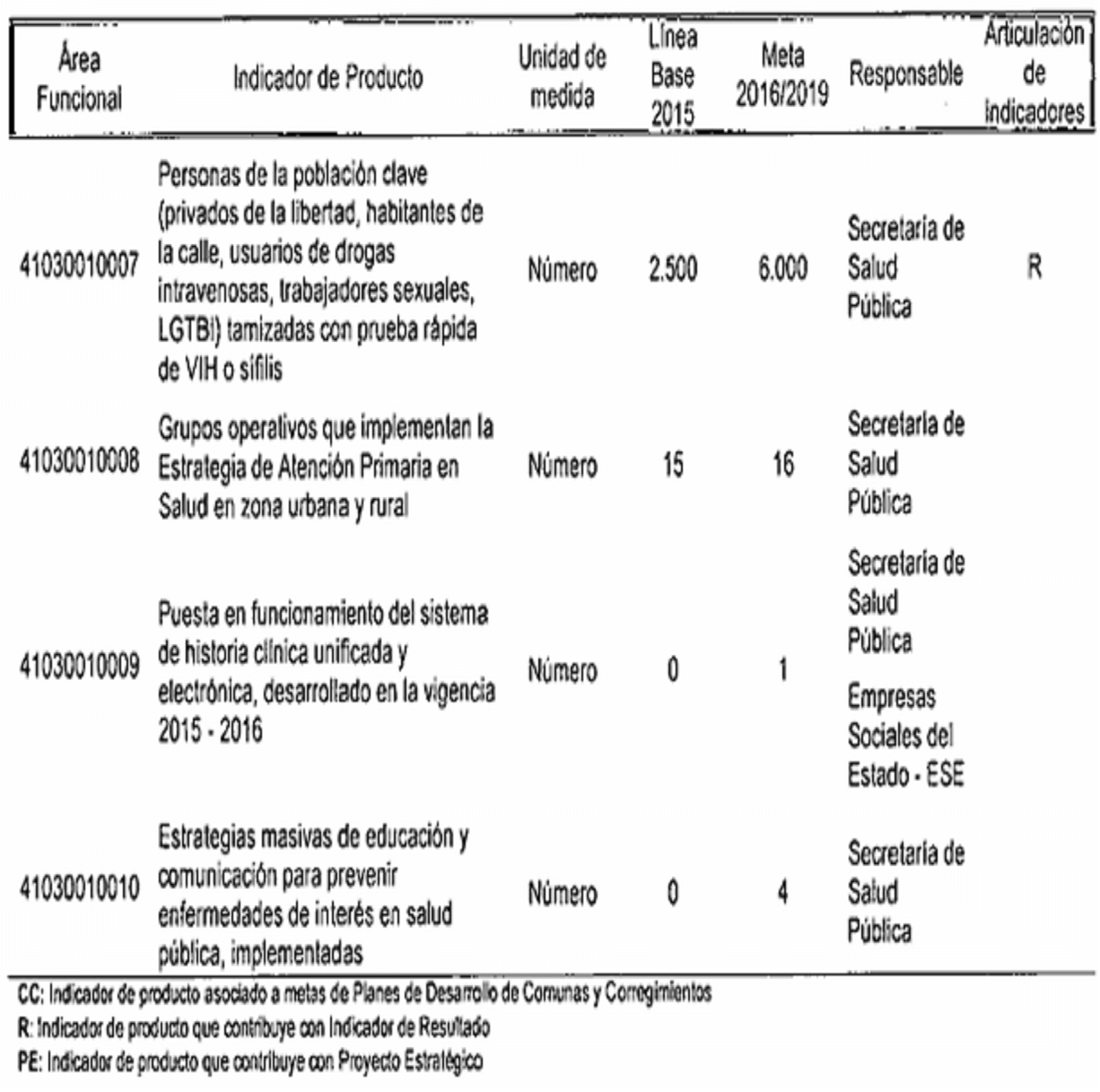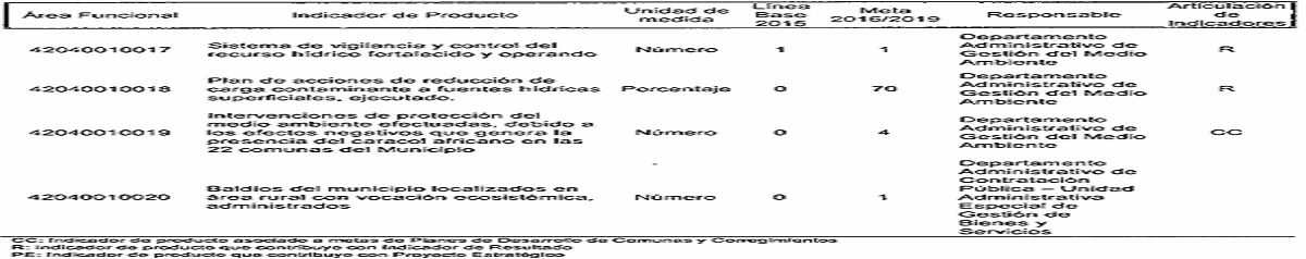 CC: Indicador de producto asociado a metas da Planes de Desarrollo de Comunas y Corregimientos R: Indicador de producto que contribuye con Indicador de Resultado