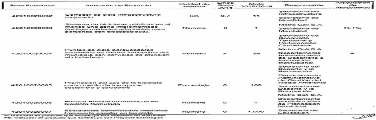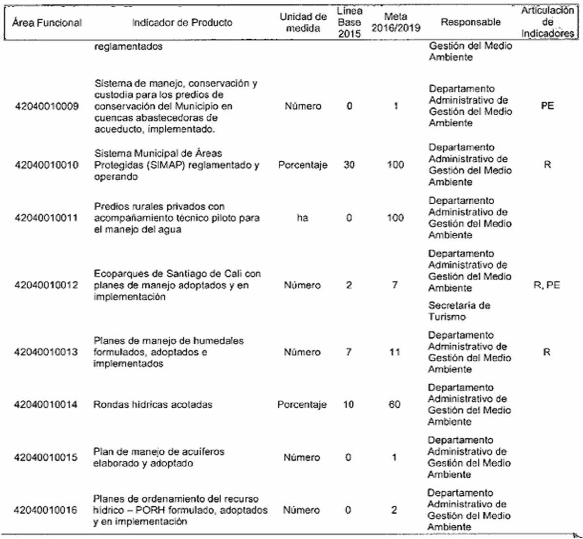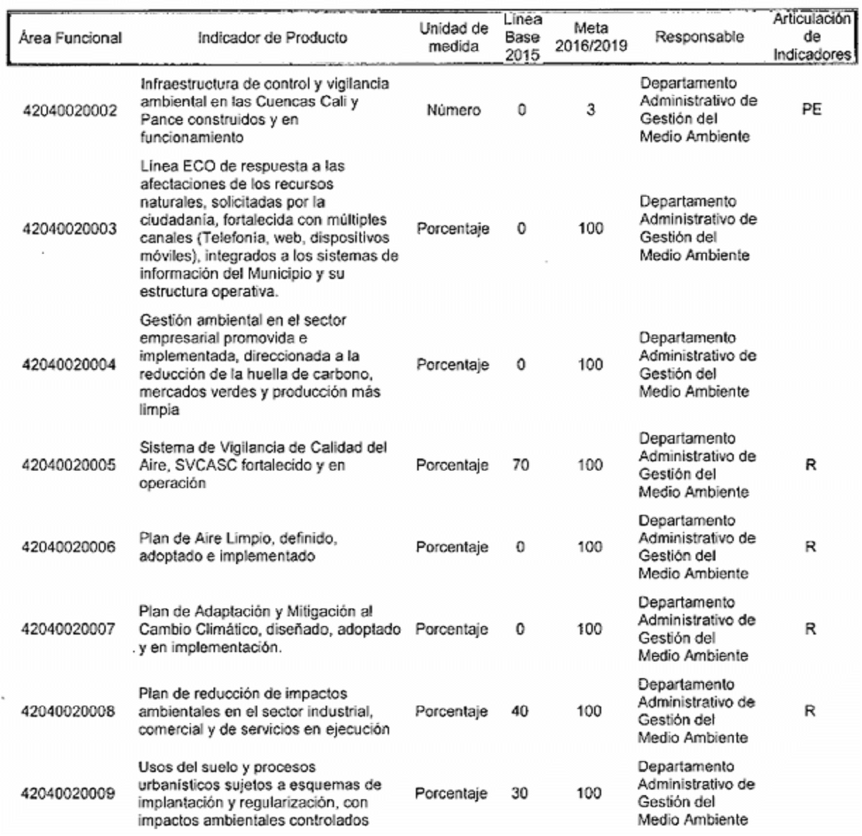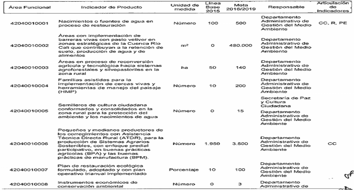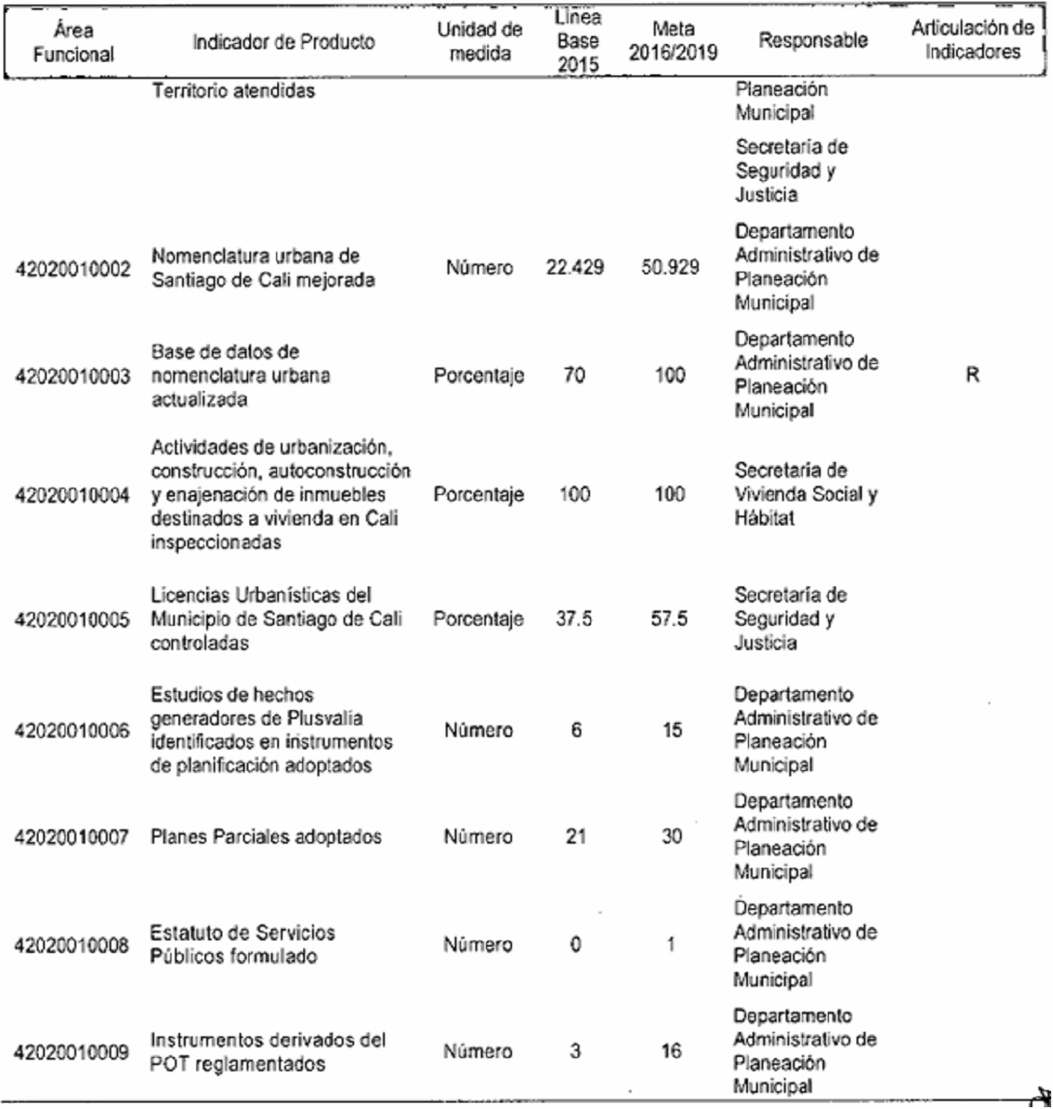 Por el cual se modifican los responsables de los indicadores de producto y resultado en el plan de desarrollo del municipio de Santiago de Cali, de conformidad con la nueva estructura administrativa.