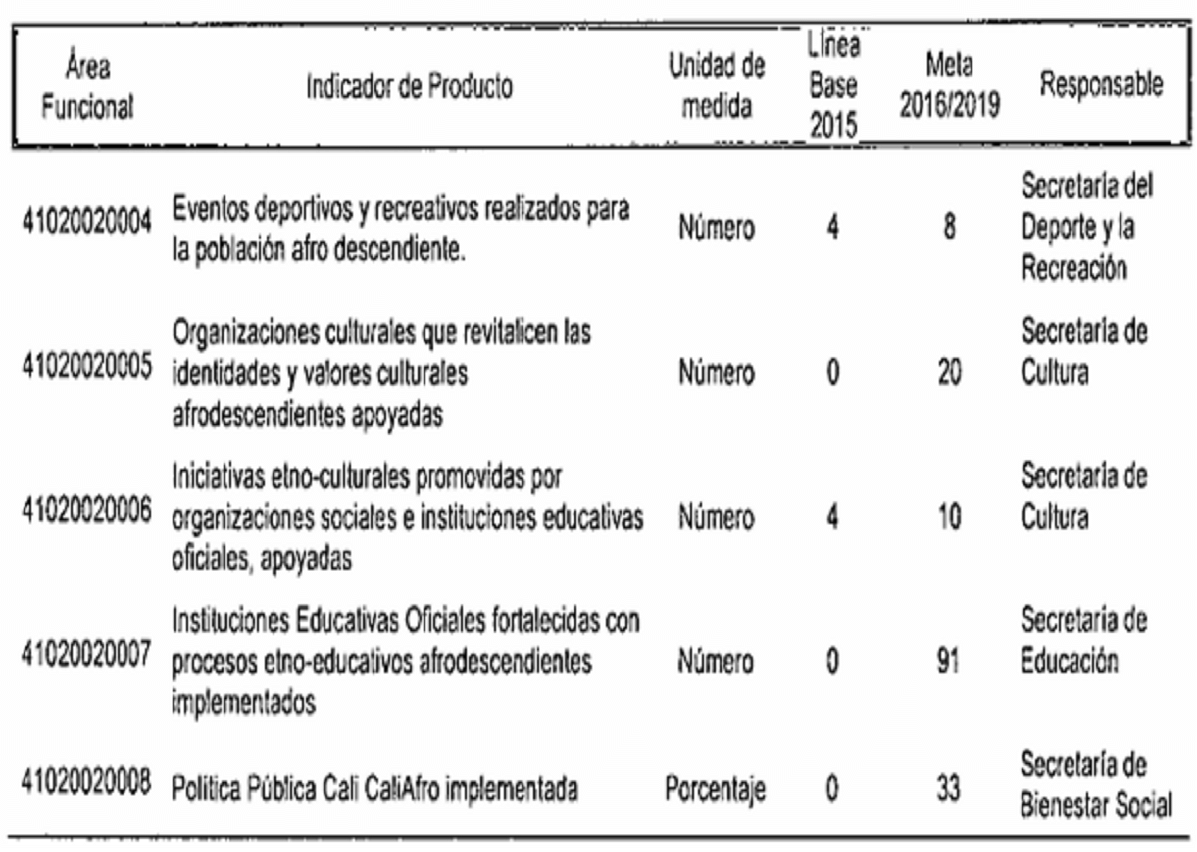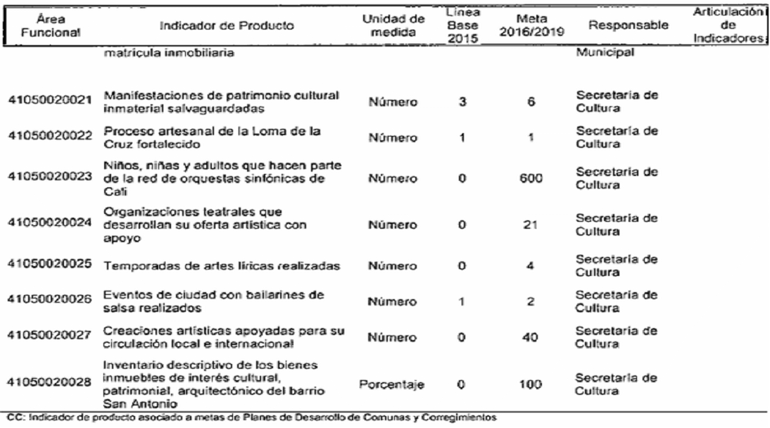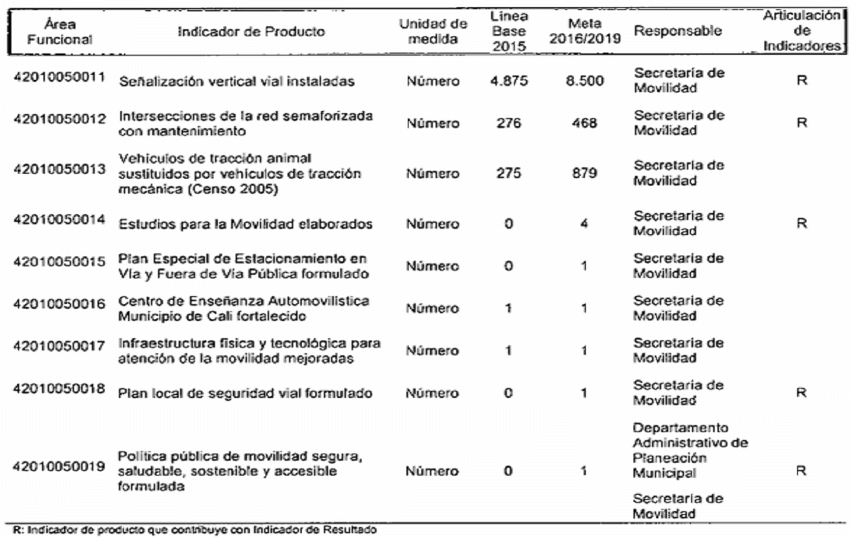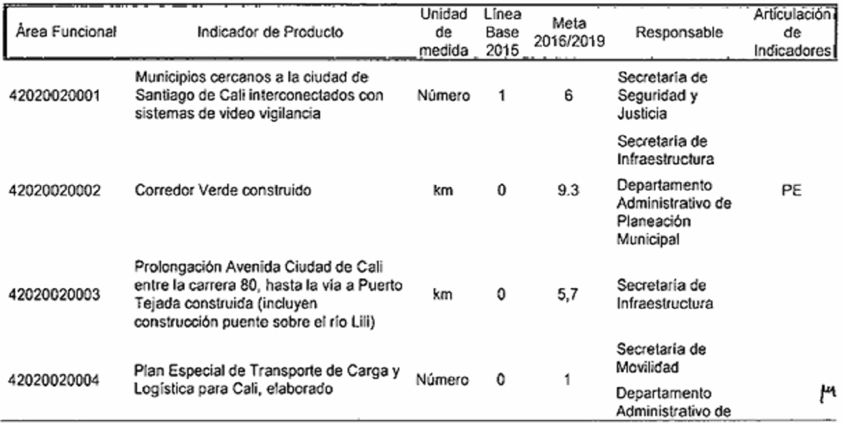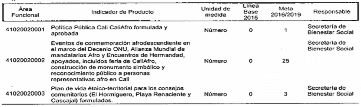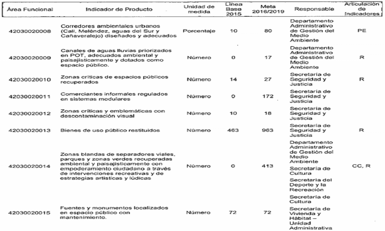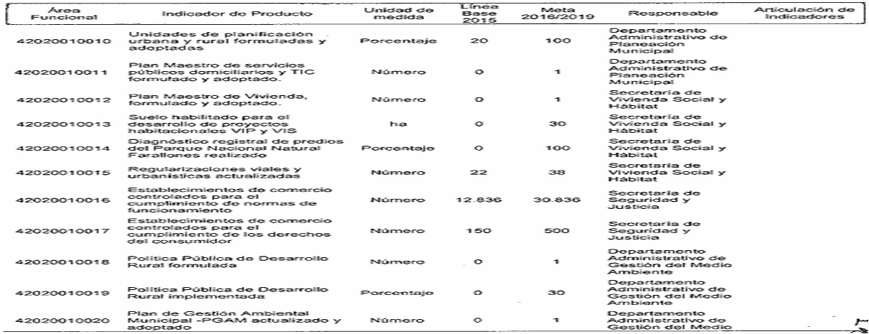 Por el cual se modifican los responsables de los indicadores de producto y resultado en el plan de desarrollo del municipio de Santiago de Cali, de conformidad con la nueva estructura administrativa.