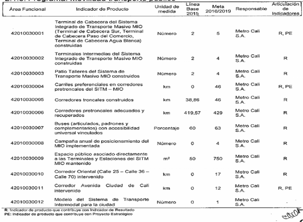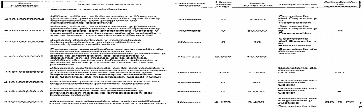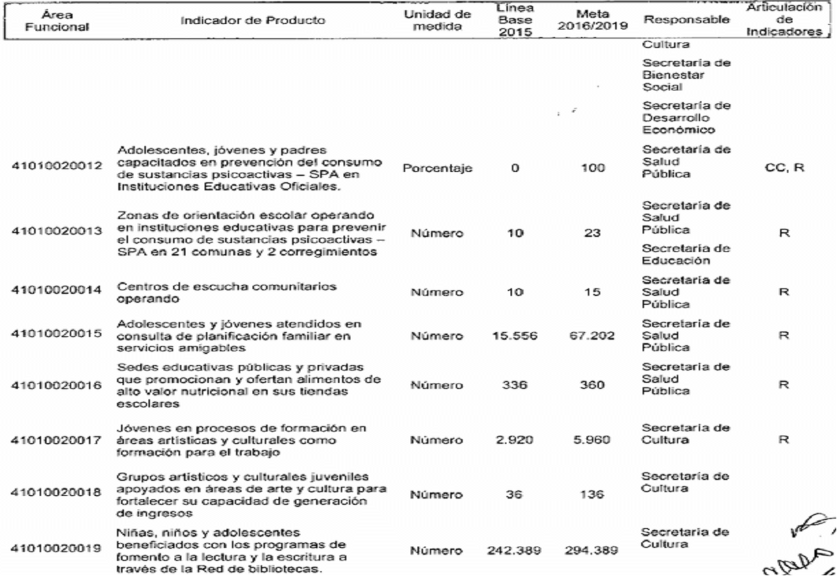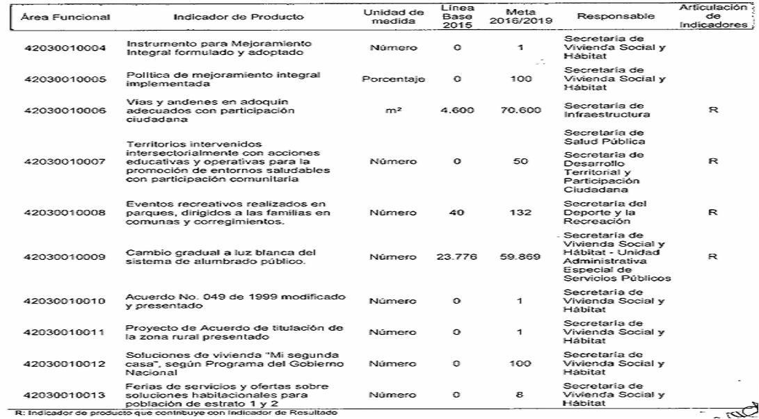 ARTÍCULO SEGUNDO. Modifíquese los responsables de los Indicadores de Resultado establecidos en el Plan de Desarrollo del Municipio de Santiago de Cali, conforme a las competencias determinadas en el Decreto Extraordinario 411.0.20.0516 de septiembre 28 de 2016, quedando así:
