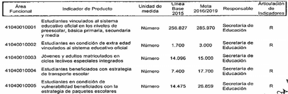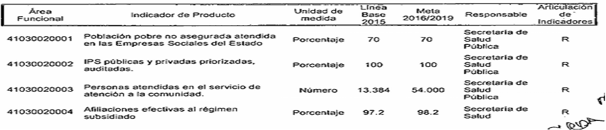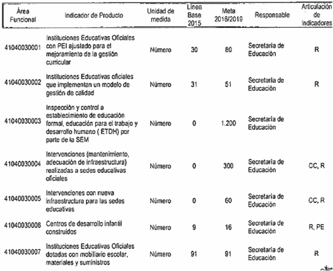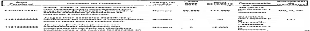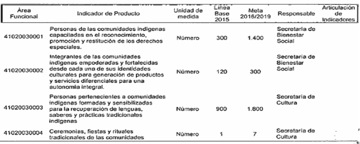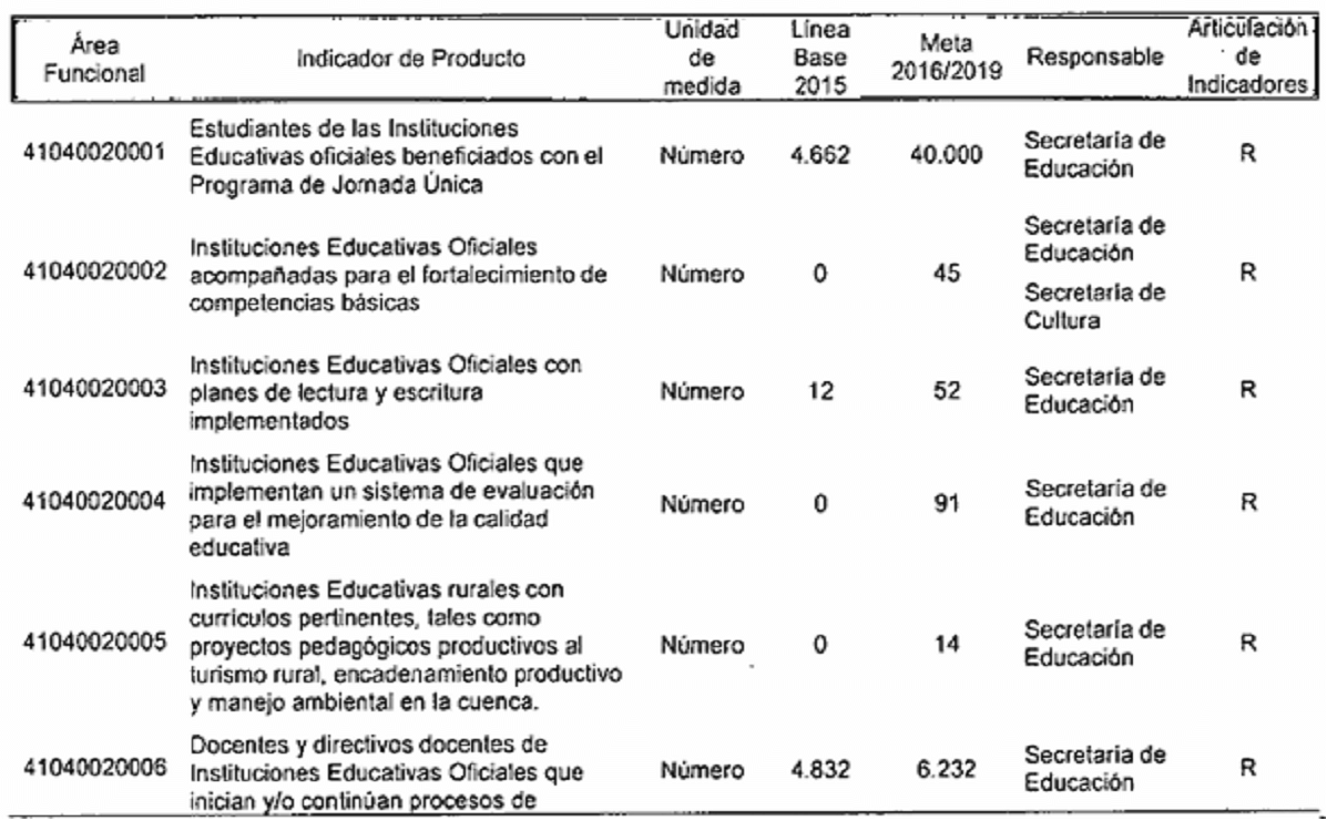 ARTÍCULO SEGUNDO. Modifíquese los responsables de los Indicadores de Resultado establecidos en el Plan de Desarrollo del Municipio de Santiago de Cali, conforme a las competencias determinadas en el Decreto Extraordinario 411.0.20.0516 de septiembre 28 de 2016, quedando así: