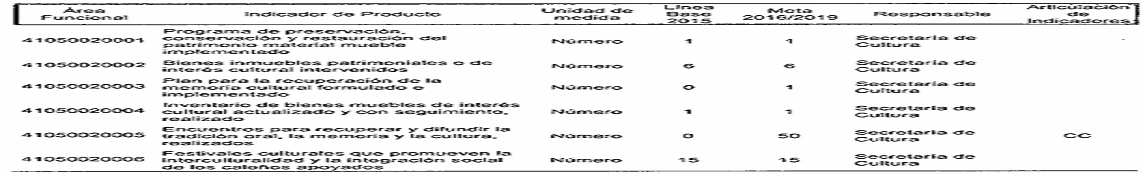 Artículo Primero. Modifíquese los responsables y corresponsables de dar cumplimiento a los Indicadores de Producto establecidos en el Plan de Desarrollo del Municipio de Santiago de Cali, conforme a las competencias determinadas en el Decreto Extraordinario 411.0.20.0516 de septiembre 28 de 2016, quedando así: