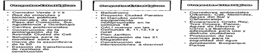 Proyectos Estratégicos Eje 1: Cali Social y Diversa.