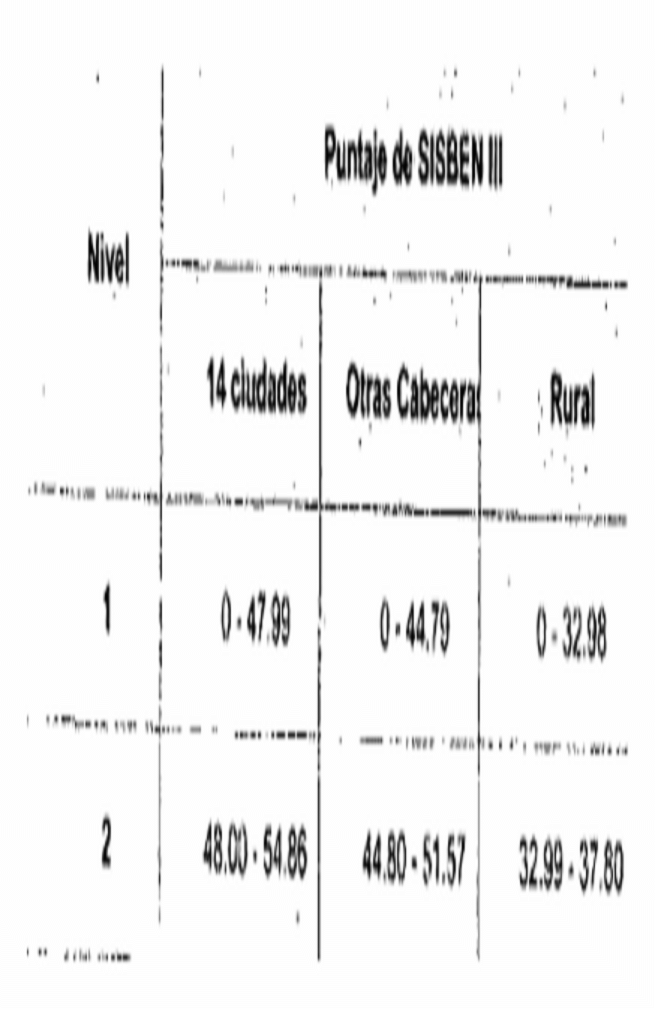 "Artículo 1. PUNTOS DE CORTE DEL SISBÉN METODOLOGÍA III. Establecer como puntos de corte para la afiliación al Régimen Subsidiado de Salud, conforme a la desagregación contenida en el documento CONPES 117 de 2008, los siguientes:
