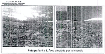 - Al momento de la visita no fue posible observar la configuración de la estructura que soporta el techo, sin embargo, el equipo técnico profesional de la Secretaria integrados por ingenieros civiles, ambientales, geólogos, geógrafos y arquitectos concluyen que de acuerdo a las condiciones de la temperatura superiores 400°C la cubierta presenta un posible riesgo de colapso por la deformación del material producto de la exposición, a la cual fue sometido el material las temperaturas causadas por el incendio. Además, de una afectación directa a teja de fibrocemento que se encuentran parcialmente desprendidas, que podrían presentar un riesgo mayor en caso de presentarse vientos o precipitaciones.