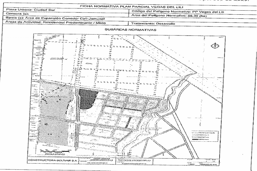 ARTÍCULO 39. FICHA NORMATIVA. El polígono correspondiente al área de planificación del plan parcial Vegas del Lili se reglamenta conforme a la Ficha Normativa que se adopta con el presente Decreto y hace parte integral del mismo, en cumplimiento de lo establecido por el parágrafo 1 del artículo 248 del Acuerdo Municipal 069 de 2000.