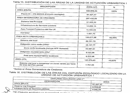 - La porción incluida dentro de cada Unidad de Gestión o Actuación no es necesaria para su desarrollo pues los predios de los demás propietarios son autosuficientes para cumplir con sus Obligaciones urbanísticas y así está considerado dentro de la formulación"(…)