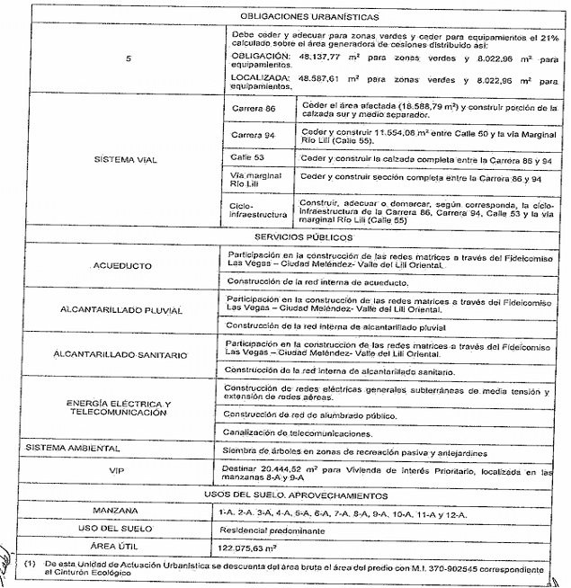 - Para el desarrollo de cualquier proceso de urbanización o construcción arquitectónica derivada del presente Decreto, se deberá dar cumplimiento a todo lo contenido en la Resolución 0100 No. 710-0529 del 13 de julio de 2018, "Por la cual se conciertan en sus aspectos ambientales del proyecto de "plan parcial Las Vegas del Lili" ubicado en el área de expansión urbana del municipio de Santiago de Cali y se toman otras determinaciones", así como lo establecido en el Decreto Nacional 1077 de 2015, en lo concerniente a licencias urbanísticas.