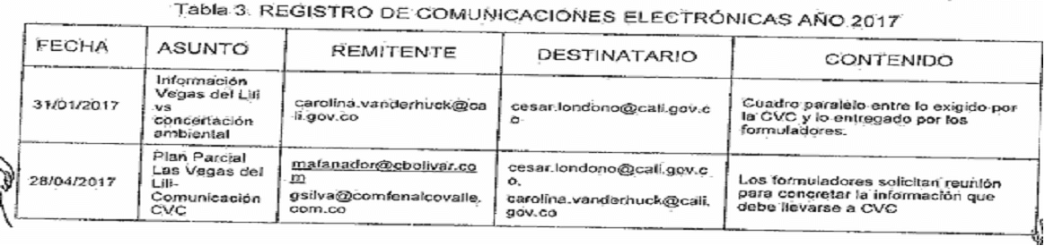 Que el 5 de abril de 2016, mediante oficio con radicado No. 2016413220022991, el Departamento Administrativo de Planeación Municipal le informó a la CVC, el listado de personas que asistirían por su parte, al proceso de concertación del proyecto de Plan Parcial Las Vegas del Lili.